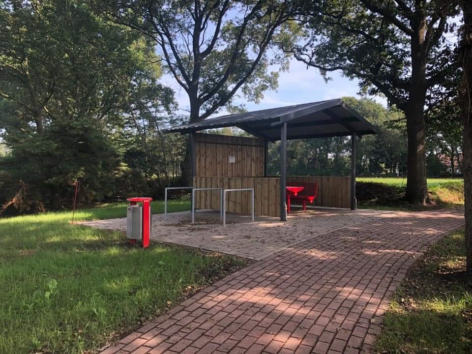 Der Rastplatz liegt direkt am Ostfriesland-Wanderweg / Schwarzer Weg in Middels.