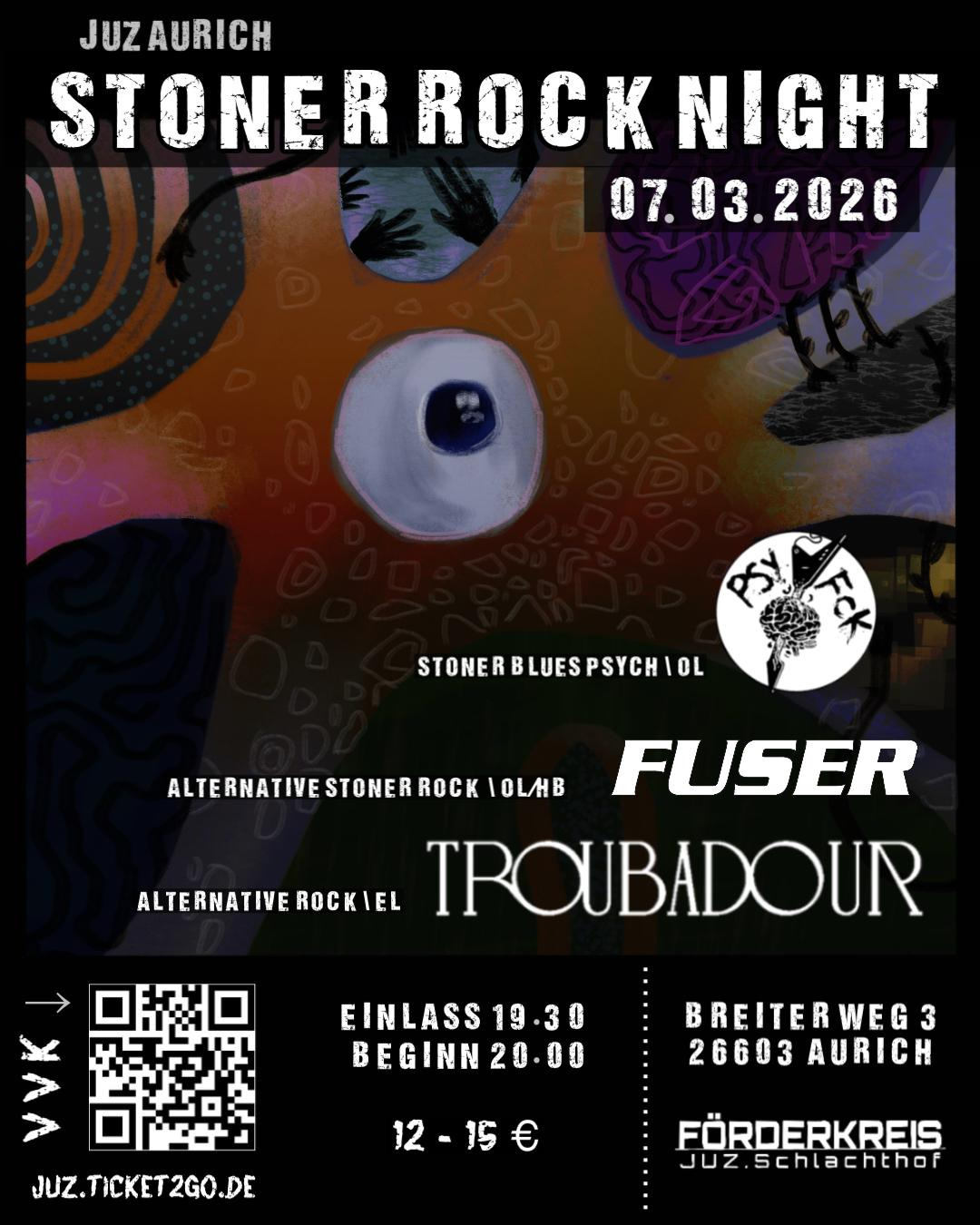Am 07.03.2026 wird es laut, schwer und psychedelisch! Freut euch auf eine Nacht voller fuzzgetränkter Riffs, treibender Grooves und hypnotischer Sounds.
