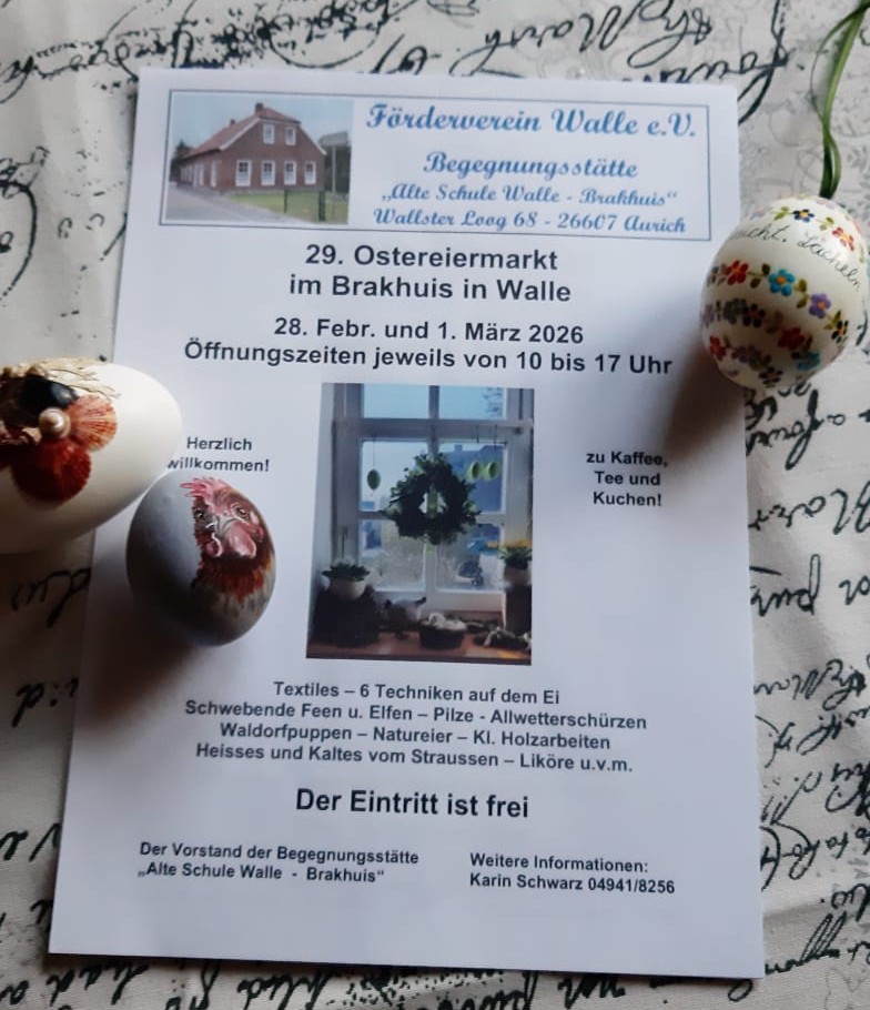 Am Samstag und Sonntag findet wieder der traditionelle Ostereiermarkt in der Begegnungsstätte "Alte Schule" in Aurich Walle statt.